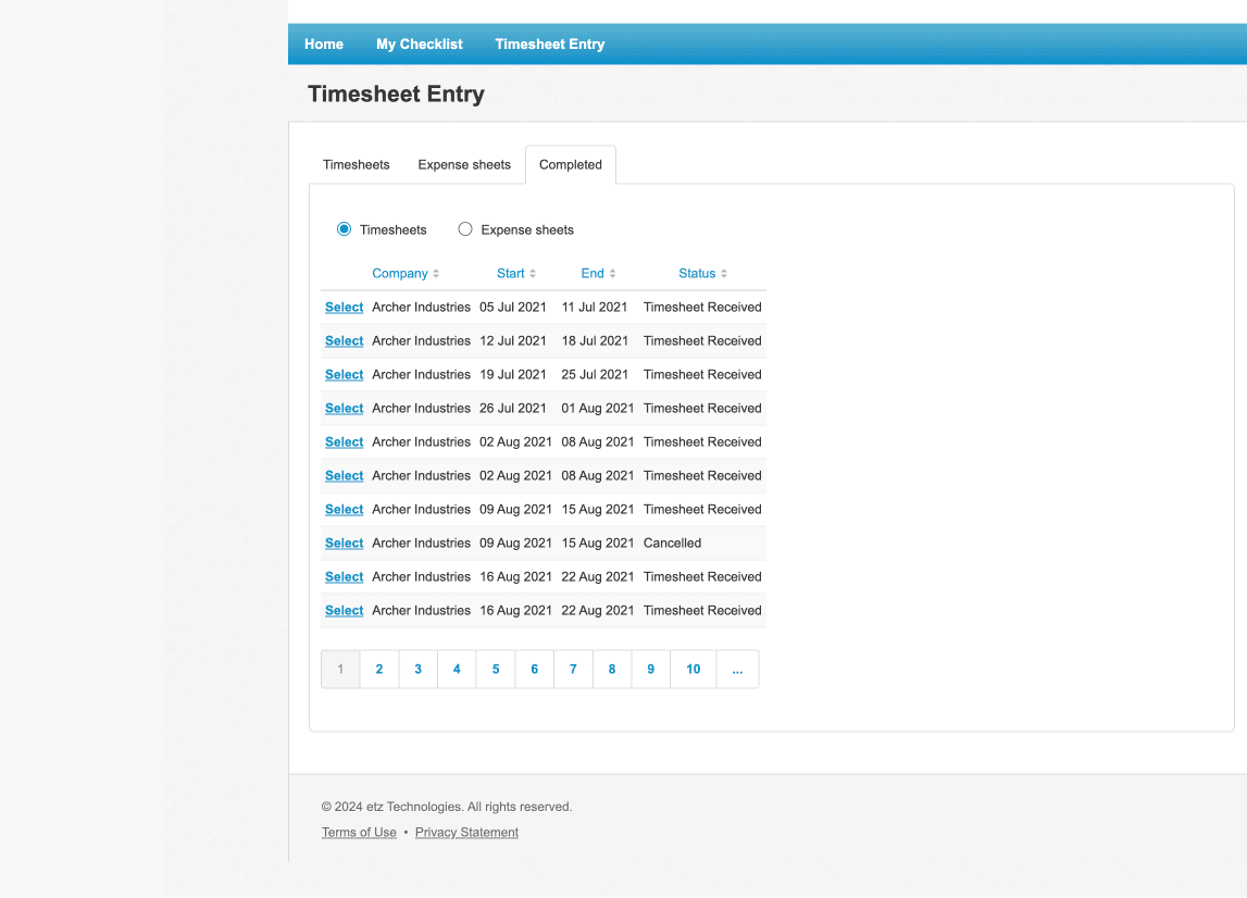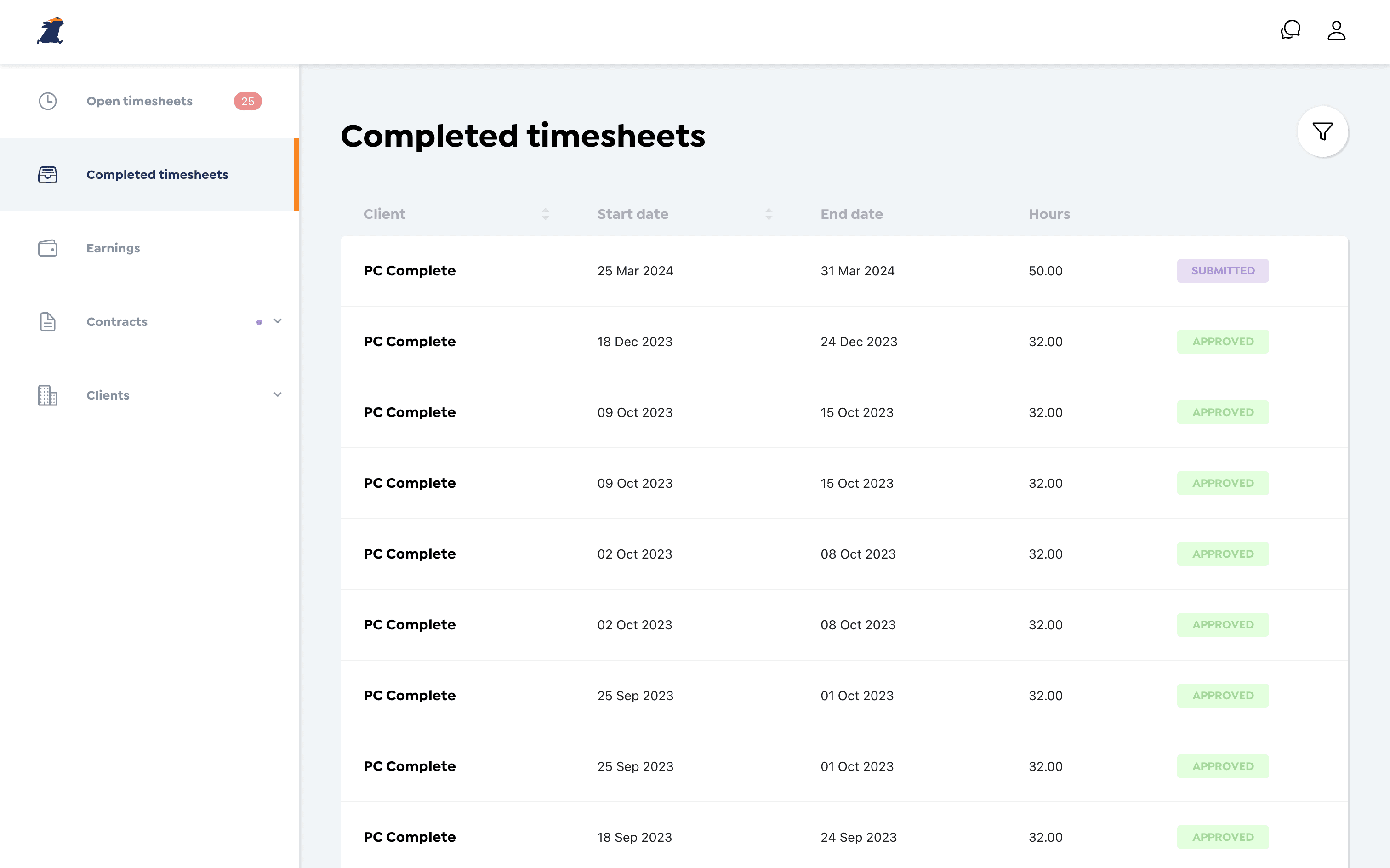 Managing timesheetsContractor