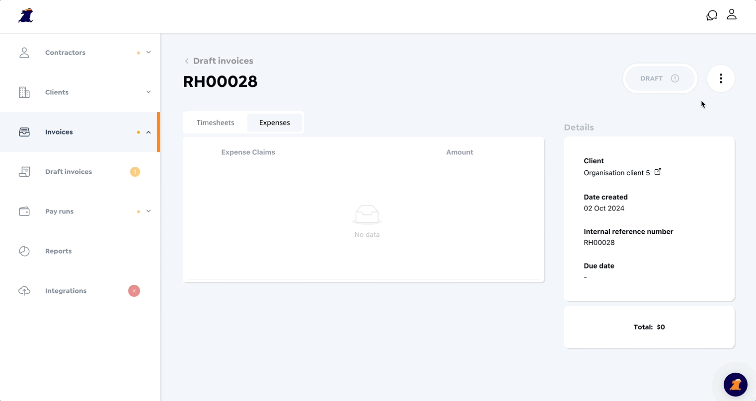 Once you've created a draft invoice for the contractor navigate to the expenses tab.