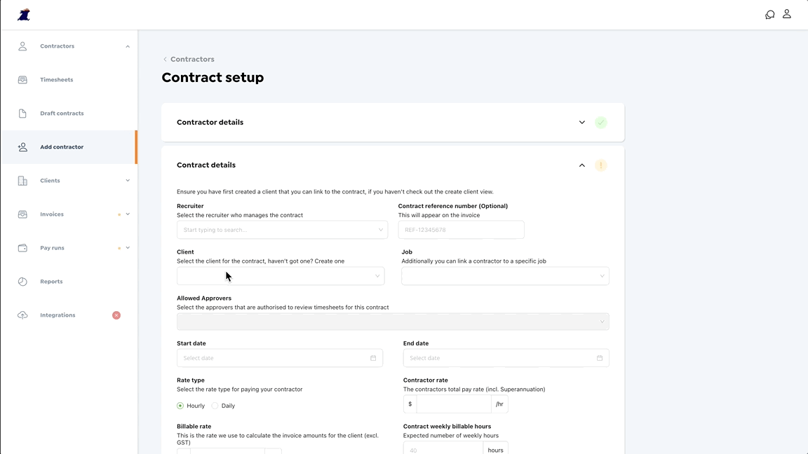 Once a job has been setup you can add contracts to them. Open the "Edit contract" form and navigate to the "Contract details" section. From the "Jobs" dropdown select the job you would like to link the contract to.